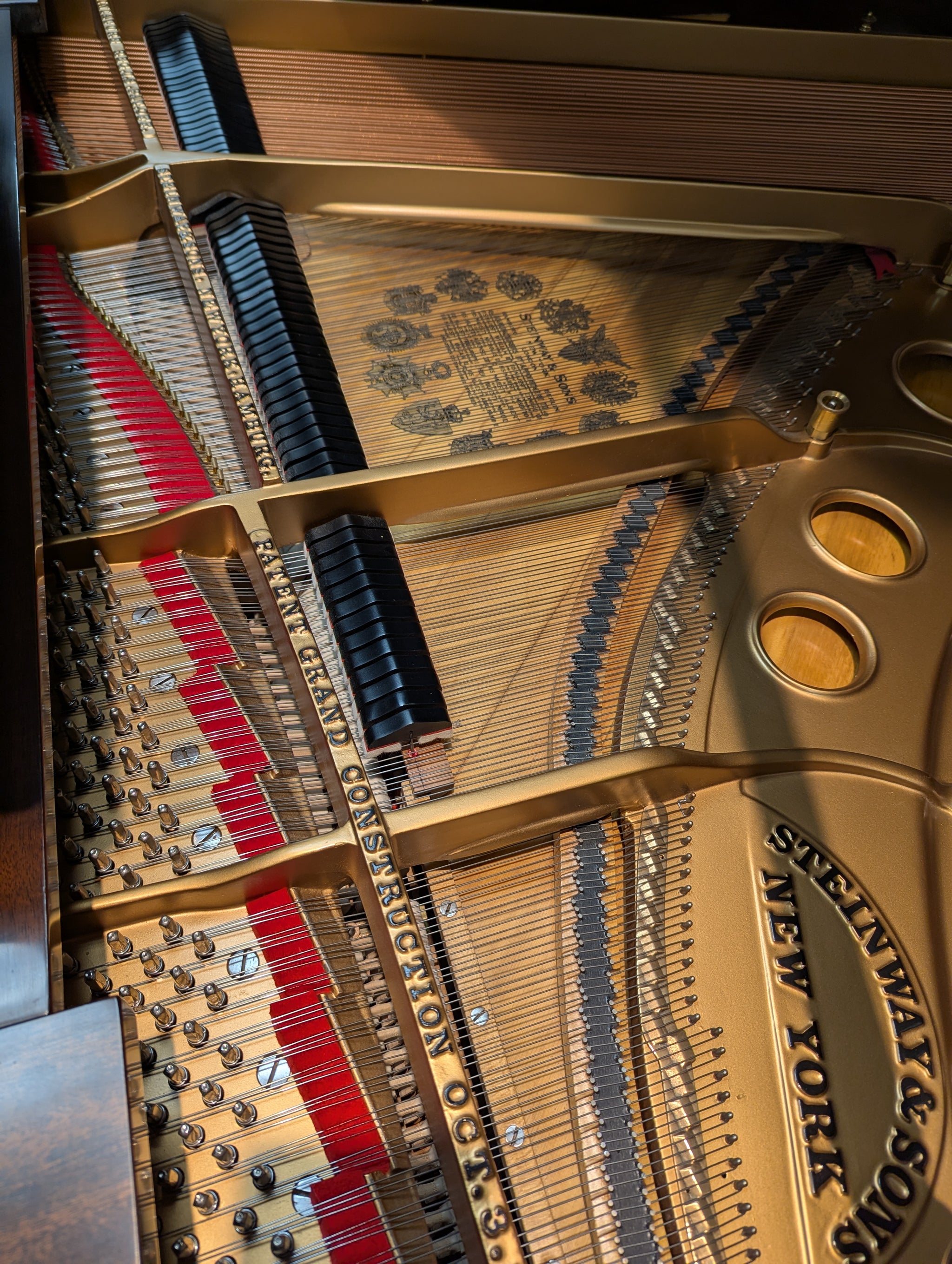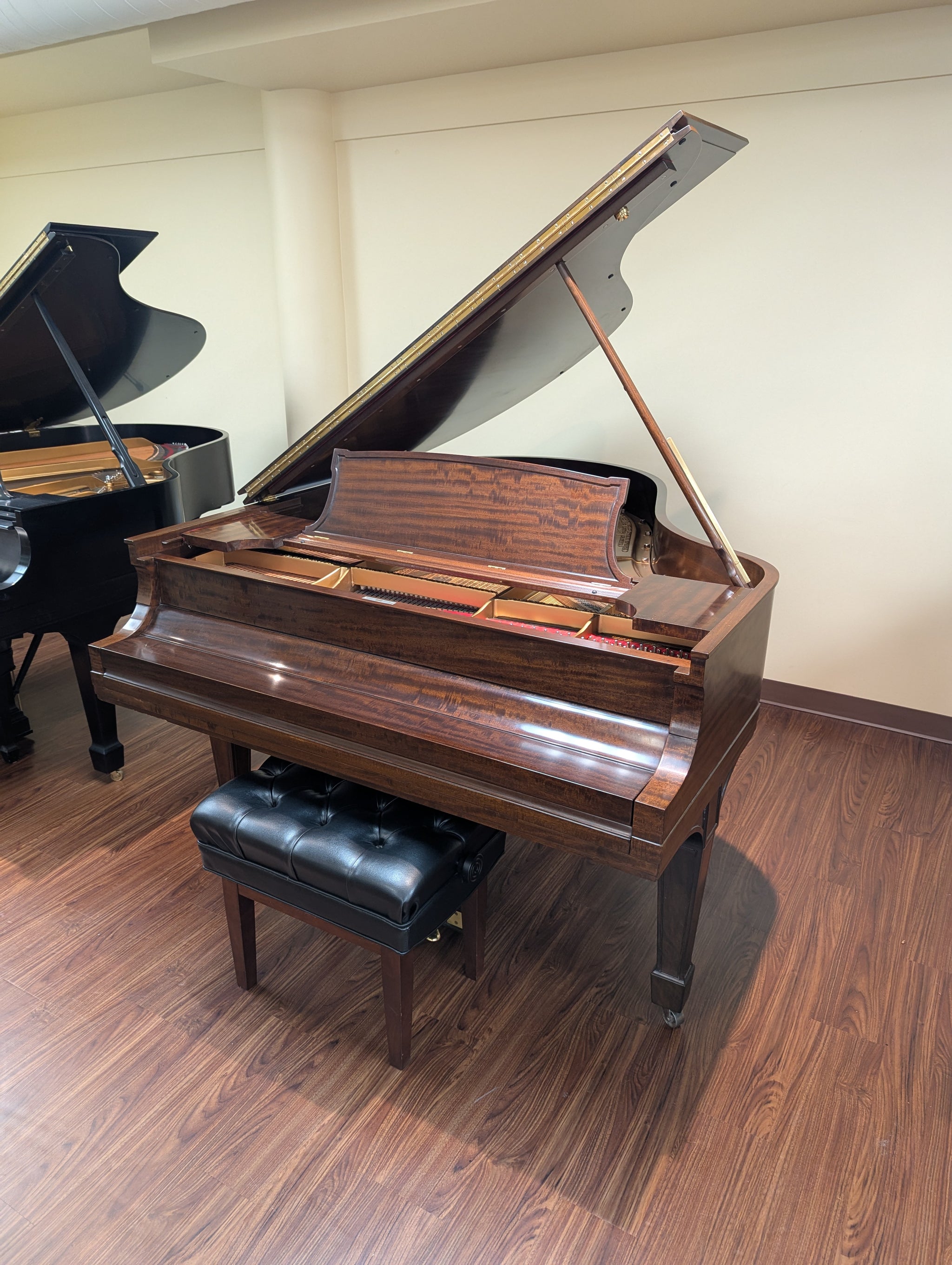 Stunning African Mahogany finish. Refinished plate. Original refinished soundboard. New pins & new strings & new pinblock. New renner shanks and flanges & dampers