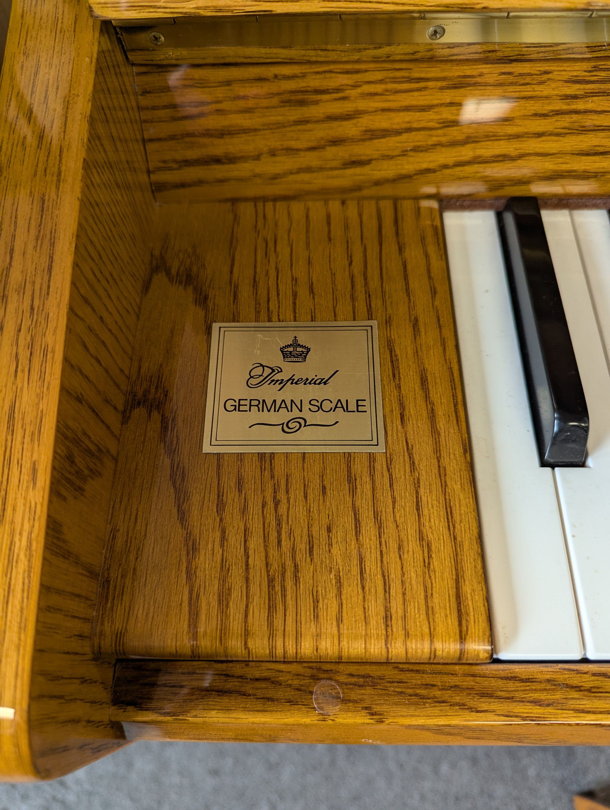 This is a good dependable piano and is a perfect upgrade from a digital piano or keyboard. Built in 1989 in Korea, Polished Oak finish